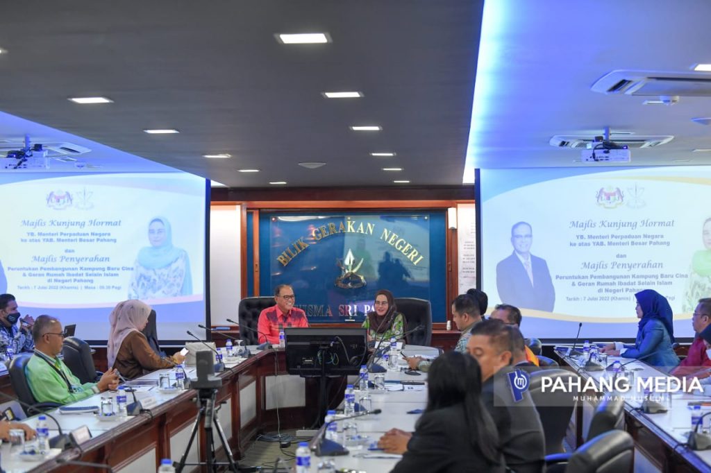 KUANTAN, 7 JULAI 2022 : Kerajaan Pahang menerima peruntukan berjumlah RM6 juta daripada Kementerian Perpaduan Negara di mana RM5 juta diberikan bagi pembangunan Kampung Baru seluruh Pahang manakala RM1 juta adalah Geran Rumah Ibadat Selain Islam.
