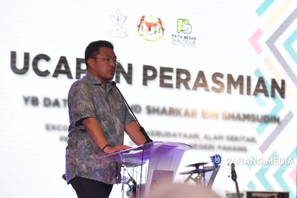Pengerusi Jawatankuasa Pelancongan, Kebudayaan, Alam Sekitar, Perladangan dan Komoditi Negeri Pahang, YB. Dato’ Sri Mohd. Sharkar Shamsudin menyampaikan ucapan perasmian pada Malam Alam Sekitar Sempena Dialog Paya Besar 2022 di Anjung Sungai Lembing, Kuantan, malam tadi.