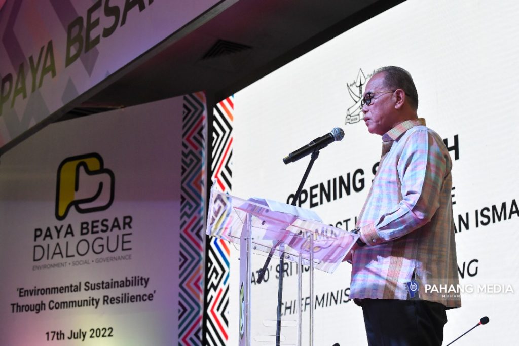 Baginda bertitah demikian pada Program Paya Besar Dialogue 2022 ‘Environmental Sustainability Through Community Resilience’ bersempena Sambutan Hari Alam Sekitar Sedunia di panggung Pahang Consolidated Company Limited (PCCL), Sungai Lembing.
