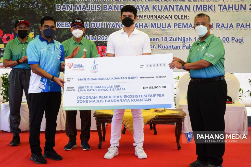 Dalam majlis yang sama, KDYMM Pemangku Raja Pahang berkenan menyaksikan penyerahan peruntukkan berjumlah RM115,500 daripada Tenaga Nasional Berhad (TNB) kepada Majlis Bandaraya Kuantan (MBK) bagi aktiviti penanaman pokok di bawah Program Pemuliharaan Ekosistem Buffer Zone di persisiran pantai dan sungai seluruh Kuantan.