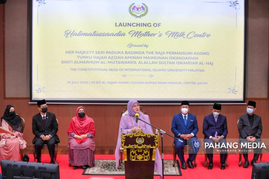 KDYMM Raja Permaisuri Agong bertitah demikian pada Majlis Perasmian Pusat Susu Bonda Halimatussaadia, Sultan Ahmad Shah Medical Centre di Universiti Islam Antarabangsa Malaysia (UIAM) di Kuantan.
