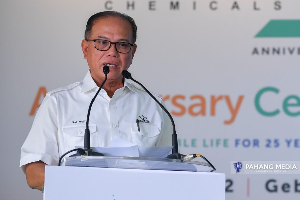 YAB Menteri Besar Pahang, Dato’ Sri Haji Wan Rosdy Wan Ismail \ ketika merasmikan Majlis Sambutan Ulang Tahun ke-25 BASF PETRONAS Chemicals di BASF Petronas Chemicals Sdn Bhd, Gebeng.