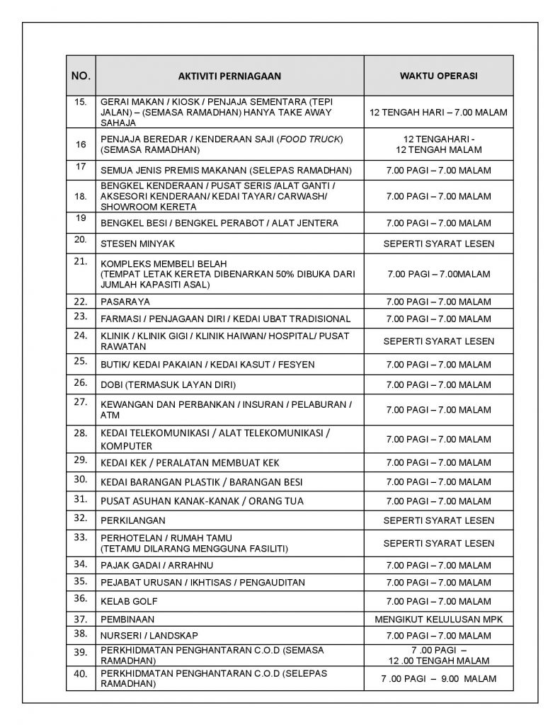 PERUBAHAN WAKTU OPERASI PENIAGAAN DALAM TEMPOH PKPB DI KUANTAN