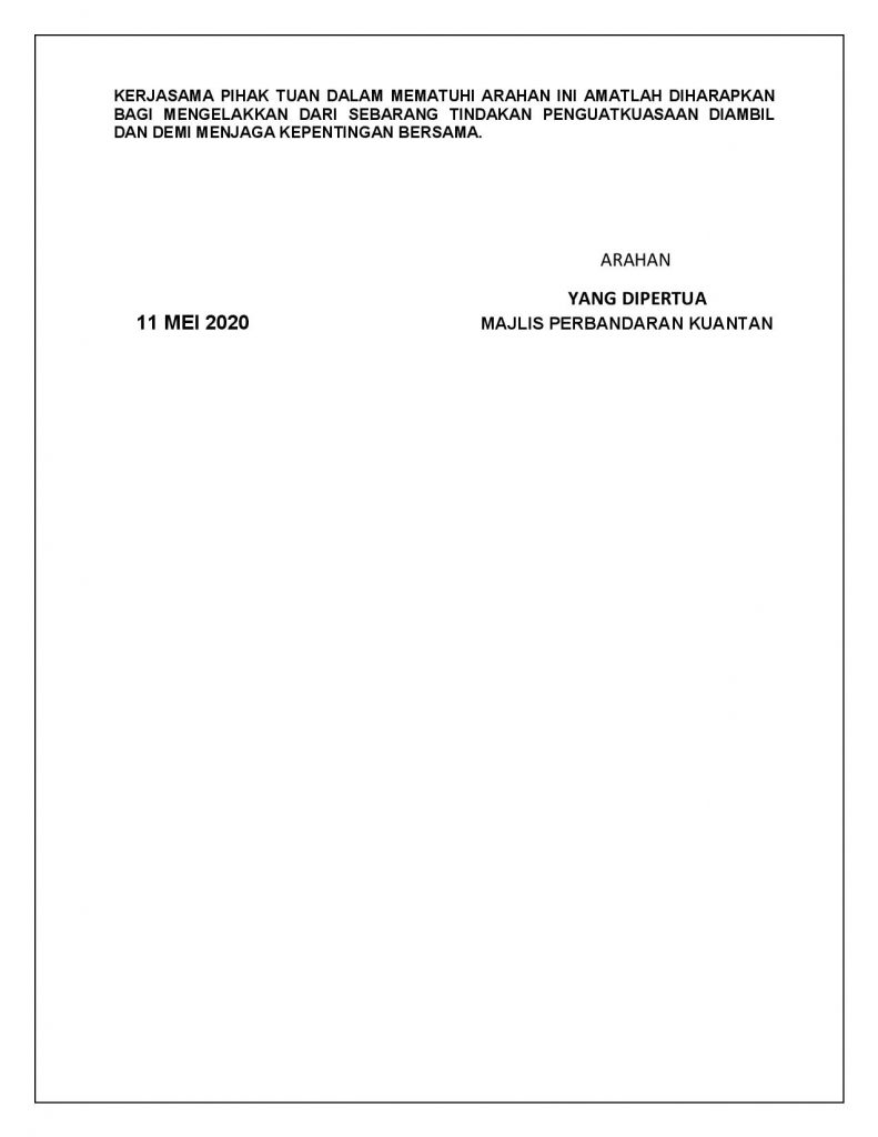 PEMAKLUMAN KERAJAAN NEGERI PAHANG MENGENAI KAWASAN YANG DILARANG AKTIVITI PENIAGAAN