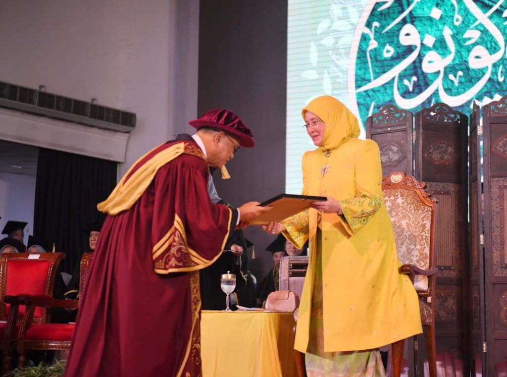 Kebawah Duli Yang Maha Mulia Seri Paduka Baginda Raja Permaisuri Agong Tunku Hajah Azizah Aminah Maimunah Iskandariah Binti Almarhum AlMutawakkil Alallah Sultan Iskandar Al-Haj yang juga Canselor UCYP berkenan mengurniakan Ijazah Doktor Kehormat dalam bidang politik dan kerajaan oleh Kolej Universiti Yayasan Pahang (UCYP) kepada YAB Menteri Besar Pahang Dato’ Sri Haji Wan Rosdy Wan Ismail