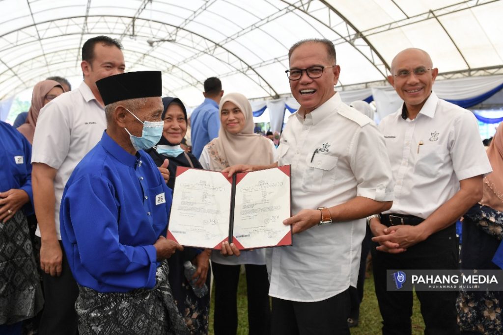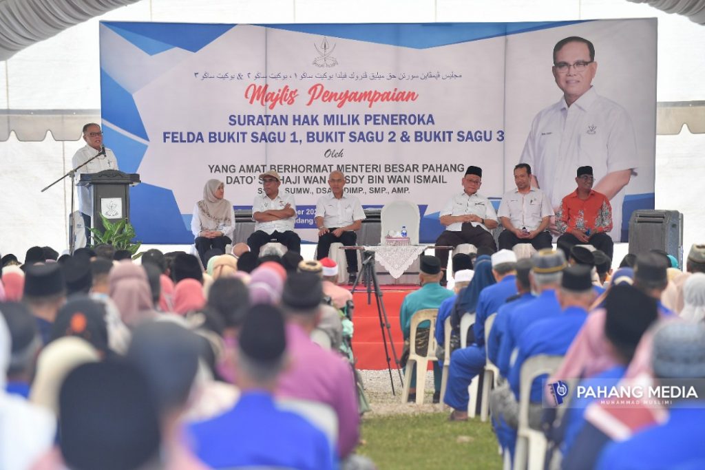 Seramai 675 penerima yang merupakan peneroka Felda Bukit Sagu 1, Felda Bukit Sagu 2, dan Felda Bukit Sagu 3 telah menerima suratan hak milik mereka hari ini. -PAHANGMEDIA
