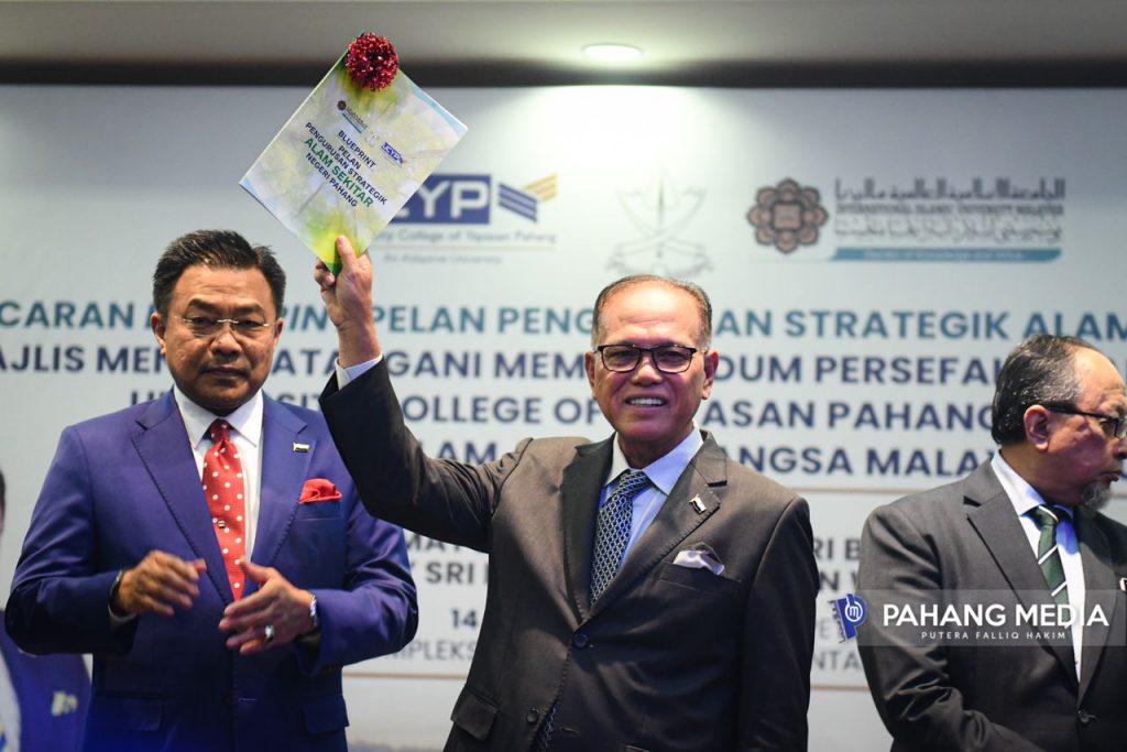 Beliau berkata demikian ketika Majlis Pelancaran Blueprint Pelan Pengurusan Strategik Alam Sekitar Negeri Pahang serta Majlis Menandatangani Memorandum Persefahaman (MoU) antara University College of Yayasan Pahang (UCYP) dan Universiti Islam Antarabangsa Malaysia (UIAM) di Dewan Utama Kompleks Yayasan Pahang, hari ini.