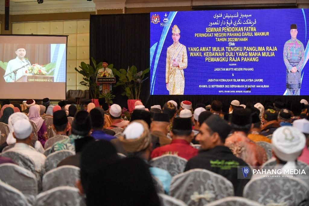Beliau berkata demikian ketika berucap mewakili YAB Menteri Besar Pahang, Dato’ Sri Haji Wan Rosdy Wan Ismail pada Majlis Perasmian Penutup Seminar Pendidikan Fatwa di Hotel Grand Darul Makmur.