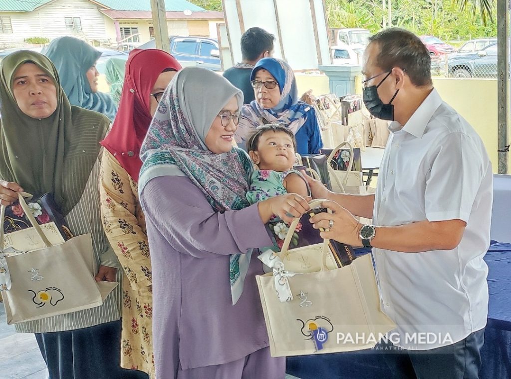 Beliau turut menyampaikan cek sumbangan Kerajaan Negeri, Pahang Pride Kasih dan Pahang Pride Kid bagi 72 orang penerima di bawah Dewan Negeri (DN) Bebar.
