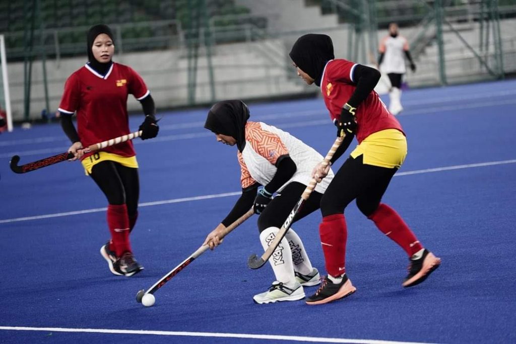 KUALA LUMPUR, 23 SEPTEMBER 2022 : Walaupun Selangor berjaya menjaringkan gol penyamaan pada tujuh minit sebelum tamat perlawanan namun ia tidak mematahkan semangat skuad hoki wanita Pahang untuk terus berjuang sehingga berjaya memenangi emas.