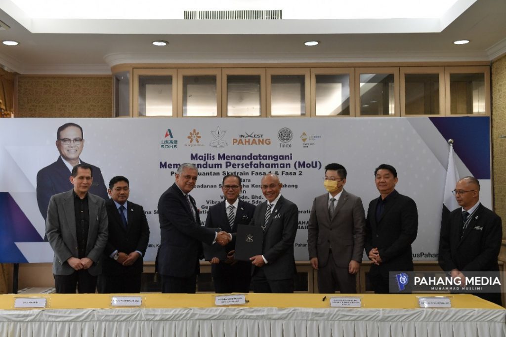 KUANTAN, 11 OKTOBER 2022 : Kerajaan Pahang menandatangani Memorandum Persefahaman (MoU) bersama empat buah syarikat bagi Projek Pembangunan Kuantan Skytrain melibatkan kos pembangunan keseluruhan RM18.28 bilion.