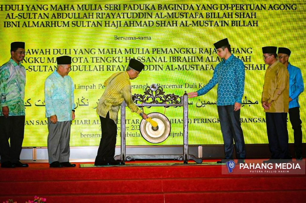 KUANTAN, 22 OKTOBER 2022 : Kebawah Duli Yang Maha Mulia Seri Paduka Baginda Yang di-Pertuan Agong, Al-Sultan Abdullah Ri’ayatuddin Al-Mustafa Billah Shah Ibni Al-Marhum Sultan Haji Ahmad Shah Al-Musta’in Billah berkenan bercemar duli merasmikan Sambutan Hari Alam Sekitar Negara (HASN) 2022 Peringkat Kebangsaan di Dewan Majlis Bandaraya Kuantan (MBK) di Kuantan.