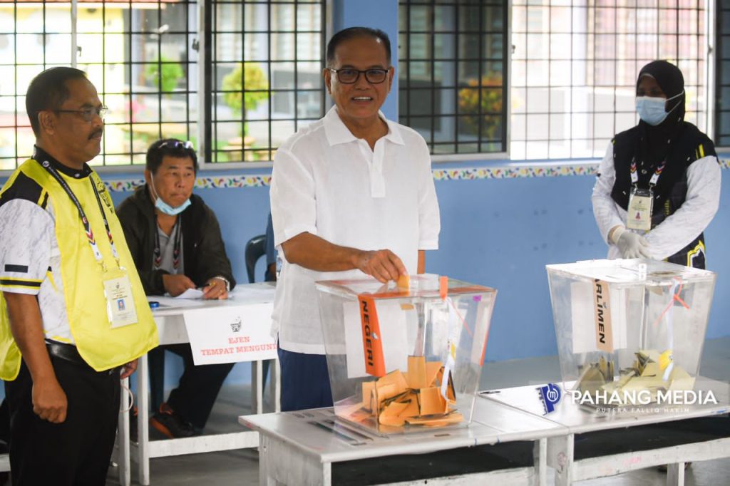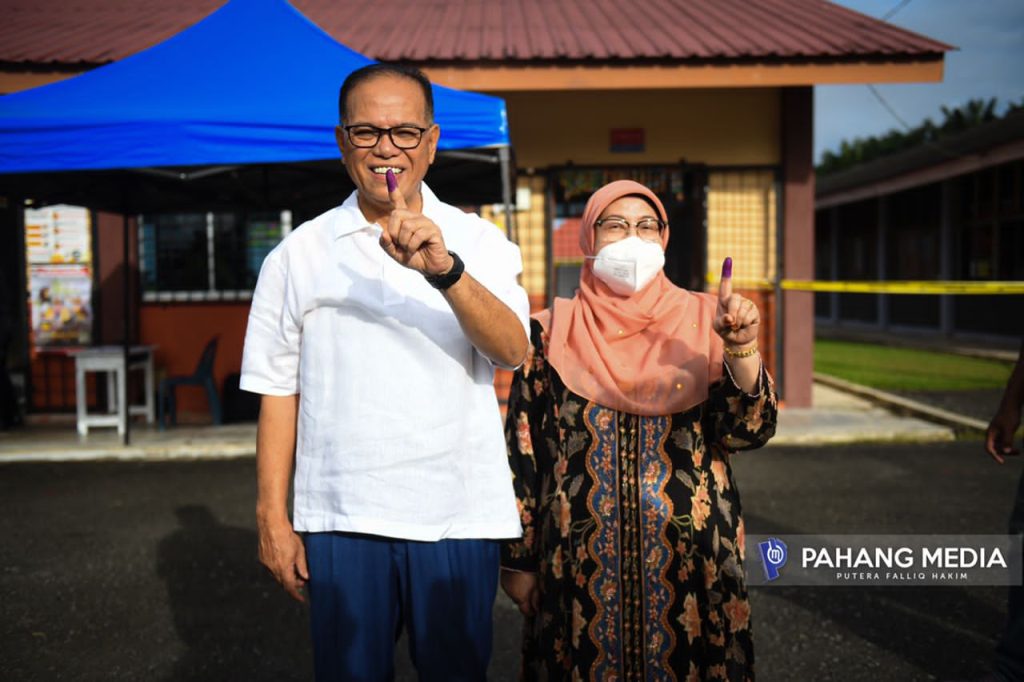 “Alhamdulillah, hari ni cuaca pun baik ramai yang keluar mengundi dan saya berdoa pengundi di Pahang dapat membuat pilihan yang tepat demi kelangsungan pencapaian yang telah kita buat selama selepas PRU Ke 14 sehingga dibubarkan.