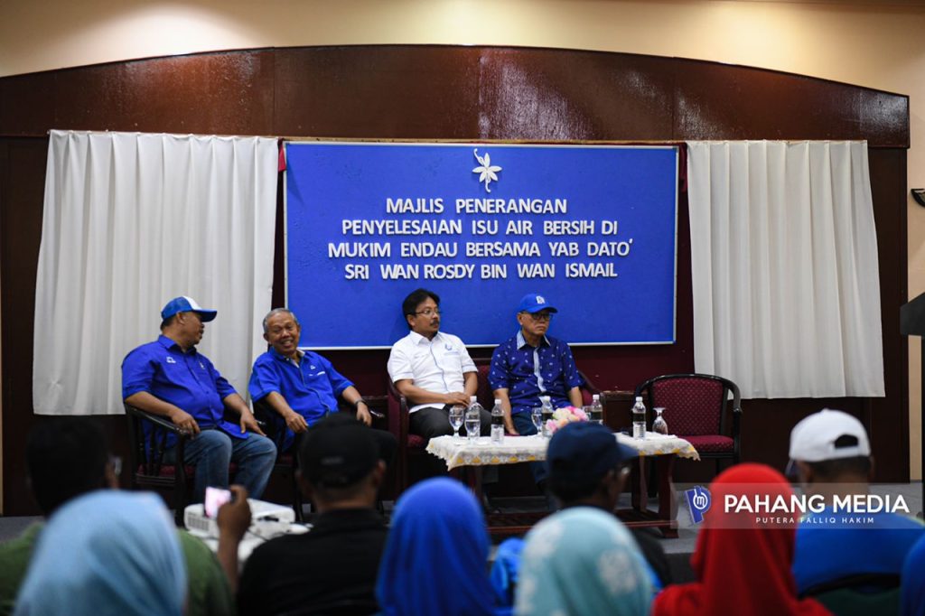 “Usaha menyelesaikan masalah air dilaksanakan secara berperingkat..tetapi pokoknya kita telah berikhtiar dan berusaha supaya masalah air di Pahang ini akan selesai 90 peratus dalam tempoh masa lima tahun.