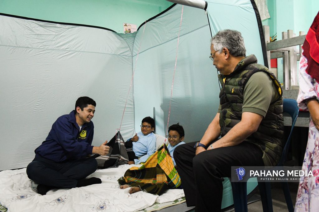 Seri Paduka Baginda bersama Pemangku Raja Pahang berkenan menziarahi dan menyampaikan kurniaan kepada mangsa banjir di dua buah PPS lain iaitu di SK Pelindung dan SMK Pelindung.