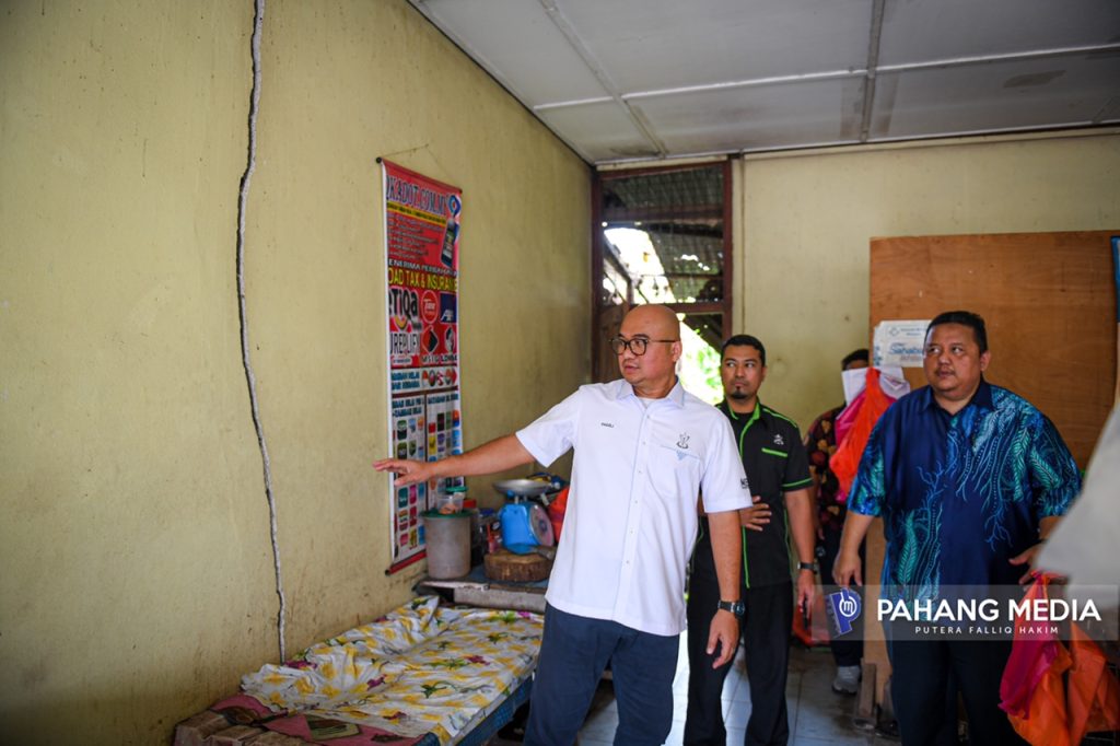 “Sejak pukul 8 pagi tadi, saya bersama dengan JKR Raub, JPS Raub, dan juga Pejabat Daerah dan Tanah Raub khusus untuk KPLB melawat tujuh kampung di kawasan Dong ini untuk melihat aduan daripada penduduk kampung yang mana ada infrastruktur rosak, ada jambatan runtuh, jalan rosak.