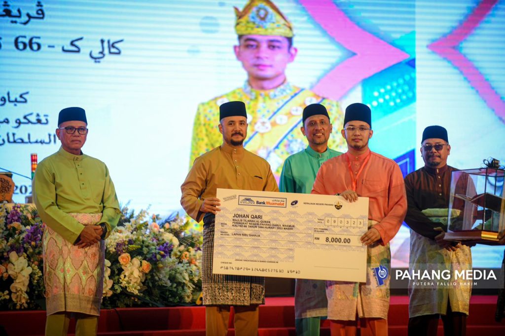 Johan qari dimenangi Mohamad Syaheed Sabri, 30, yang sebelum ini mewakili Daerah Raub dengan memperoleh 91 markah dan johan qariah diberikan kepada Siti Fatimah Mohd Noor, 20, yang mewakili Daerah Kuantan pada tahun lalu berjaya menewaskan peserta lain dengan 87 markah.