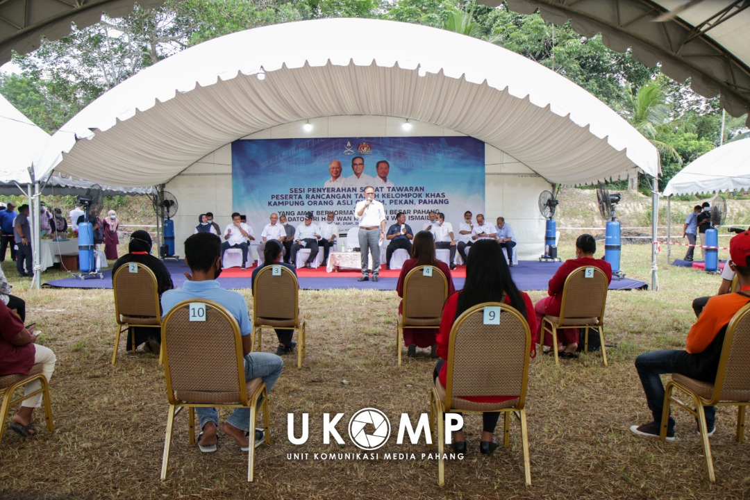 Menteri Besar Pahang, YAB Dato’ Sri Haji Wan Rosdy Wan Ismail menyampaikan ucapan pada Majlis Penyerahan Surat Tawaran Peserta Rancangan Tanah Kelompok Kampung Orang Asli Gumum, Pekan hari ini.
