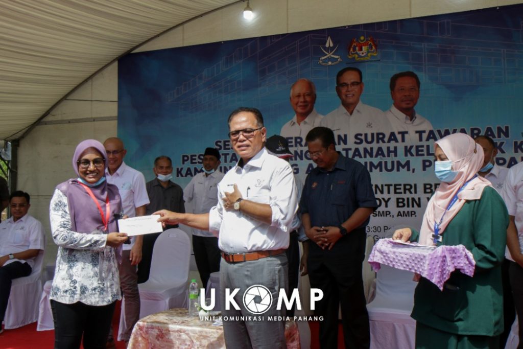 Surat tawaran membabitkan tanah seluas 323.75 hektar tersebut disampaikan oleh Menteri Besar Pahang, YAB. Dato’ Sri Haji Wan Rosdy Wan Ismail dalam satu majlis khas di Padang Awam Kampung Orang Asli Gumum, Chini, di sini.