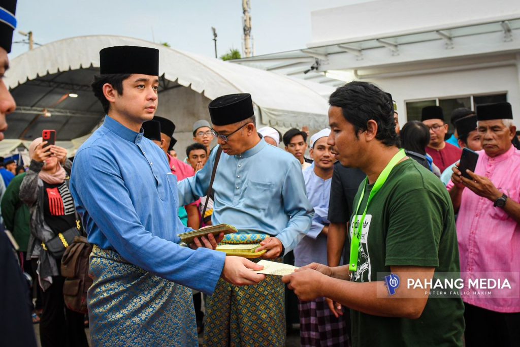 Turut hadir, YB. Setiausaha Kerajaan Pahang, Dato’ Sri Dr Sallehuddin Ishak; Yang Dipertua Dewan Undangan Negeri Pahang, YB. Dato’ Sri Hj Mohd Sharkar Haji Shamsudin; Exco Hal Ehwal Agama Islam, Pembangunan Luar Bandar dan Hal Ehwal Orang Asli Negeri Pahang, YB. Dato’ Sri Syed Ibrahim Syed Ahmad; dan Exco Perpaduan, Pelancongan dan Kebudayaan Negeri Pahang, YB. Cik Leong Yu Man. -PAHANGMEDIA