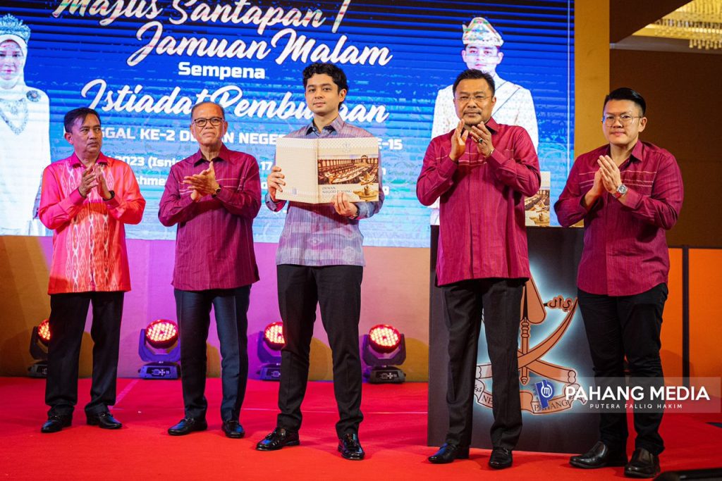 KUANTAN, 8 MEI 2023 : Kebawah Duli Yang Maha Mulia Pemangku Raja Pahang Tengku Mahkota Tengku Hassanal Ibrahim Alam Shah Ibni Al-Sultan Abdullah Ri’ayatuddin Al-Mustafa Billah Shah berkenan melancarkan ‘Coffee Table Book’ Dewan Negeri Pahang : Memacu Legasi Perlembagaan di Hotel Zenith di sini hari ini.