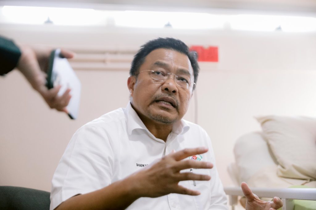 Yang Dipertua Dewan Undangan Negeri Pahang, YB. Dato’ Sri Hj Mohd Sharkar Haji Shamsudin ketika Program Ziarah Kasih YDP Dewan Negeri Pahang kepada bekas Ahli Dewan Negeri Pahang di KPJ Kuantan Care & Wellness Centre Teluk Sisek di sini.