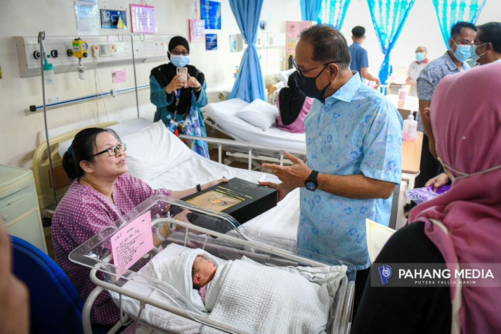 YAB Menteri Besar Pahang, Dato’ Sri Haji Wan Rosdy Wan Ismail berkesempatan meraikan kelahiran bayi di Hospital Kuala Lipis pada Program Kick Off Pahang Pride Kid 2023