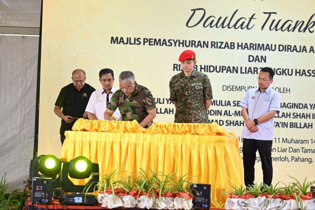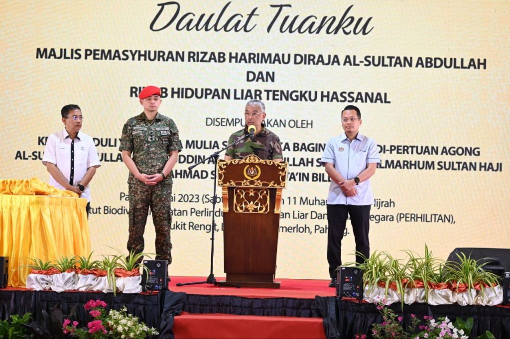 Baginda bertitah demikian ketika berkenan bercemar duli pada Majlis Pemasyhuran Rizab Harimau Diraja Al-Sultan Abdullah dan Rizab Hidupan Liar Tengku Hassanal di Institut Biodiversiti Jabatan Perlindungan Hidupan Liar dan Taman Negara (PERHILITAN) di Bukit Rengit, Lanchang.