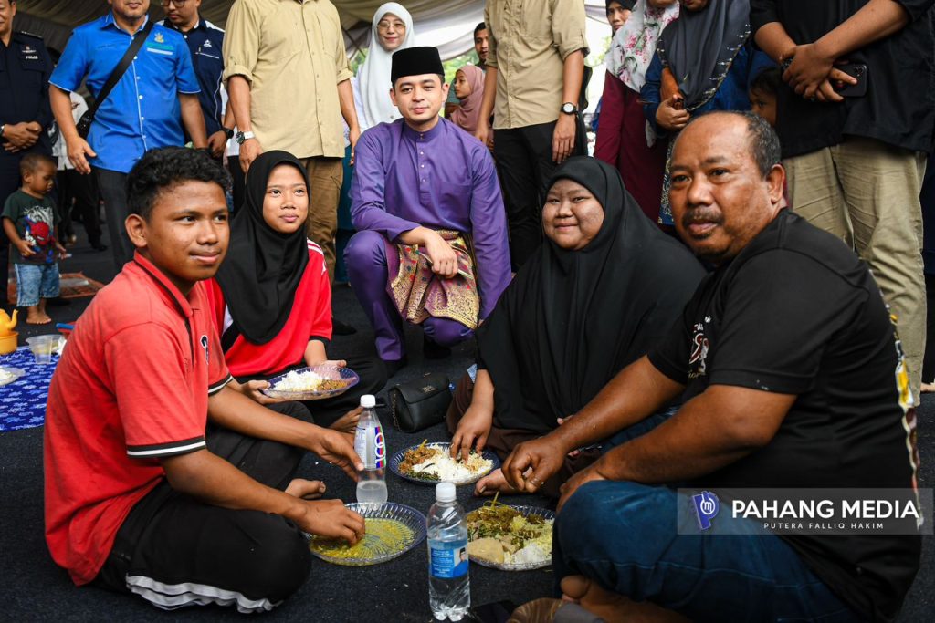 Turut mengiringi baginda ialah YB Setiausaha Kerajaan Pahang, Dato’ Indera Haji Zulkifli Yaacob; Exco Kerajaan Tempatan, Perumahan, Alam Sekitar dan Teknologi Hijau Negeri Pahang, YB. Dato’ Sri Johari Harun; Exco Pelaburan, Perindustrian, Sains, Teknologi dan Inovasi Negeri Pahang, YB. Dato’ Mohamad Nizar Dato’ Sri Mohamad Najib; Pegawai Daerah Jerantut, Dato’ Khairun Nissa Aris dan seluruh kepimpinan setempat.