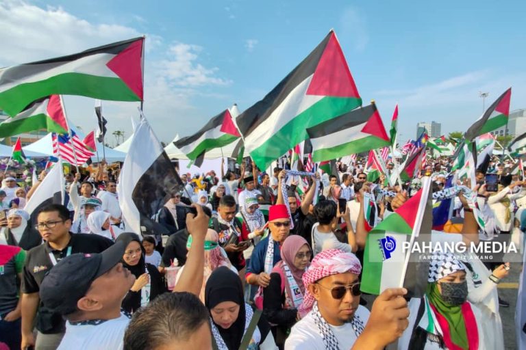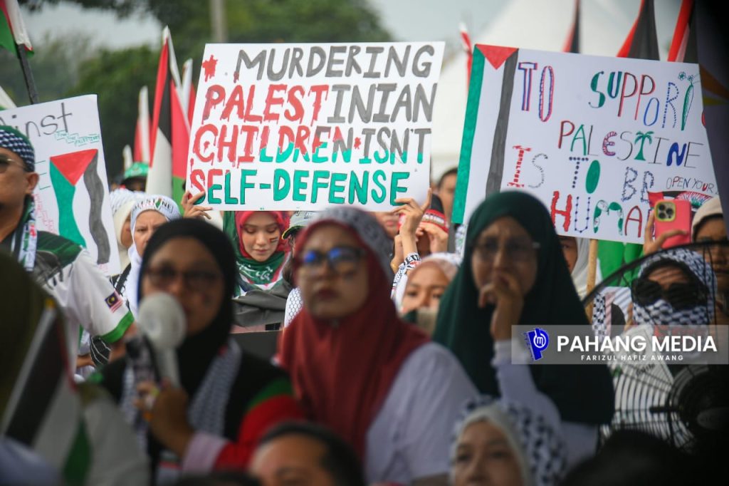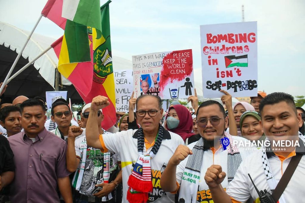KUANTAN, 28 OKTOBER 2023 : Pahang merupakan negeri pertama yang menganjurkan himpunan besar-besaran bagi menunjukkan sokongan kepada Palestin yang teruk dibedil oleh rejim Zionis.