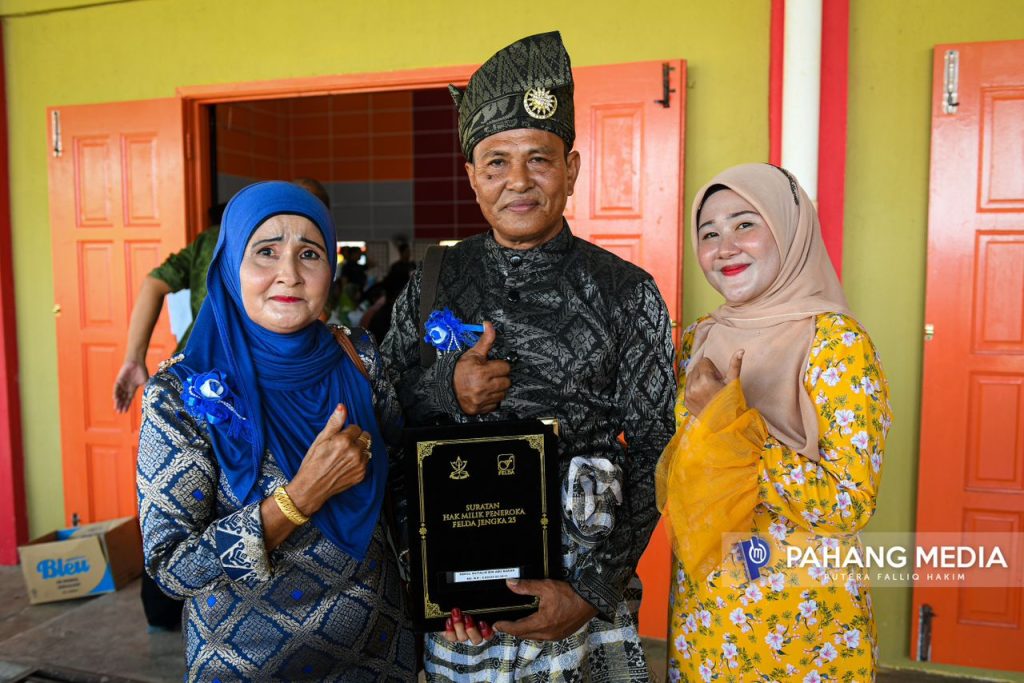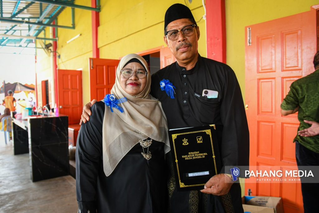 Kesemua mereka bersama 149 peneroka lain telah menerima suratan hak milik masing-masing yang telah disampaikan sendiri oleh YAB Menteri Besar Pahang, Dato’ Sri Haji Wan Rosdy Wan Ismail di Dewan Semai Bakti, FELDA Jengka 25, semalam.