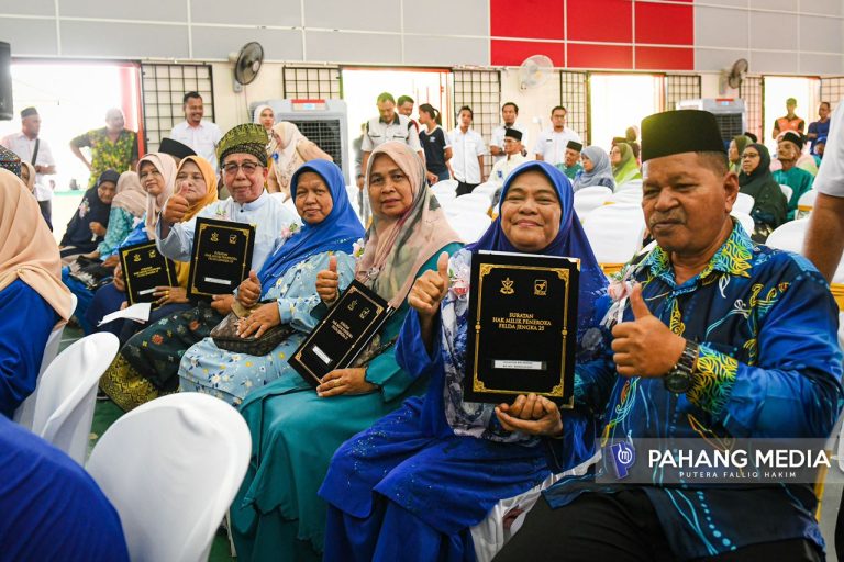 Sehingga kini 95 peratus peneroka FELDA telah menerima suratan hak milik masing-masing hanya 5 peratus yang masih dalam proses pemilikan. – PAHANGMEDIA