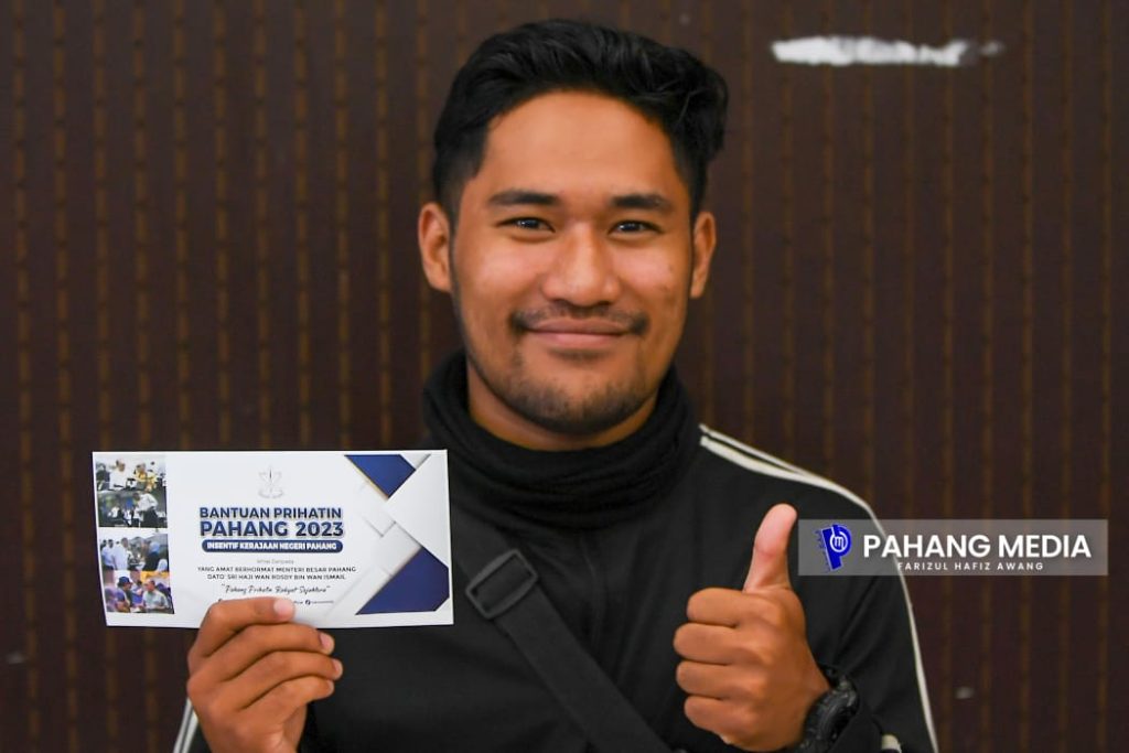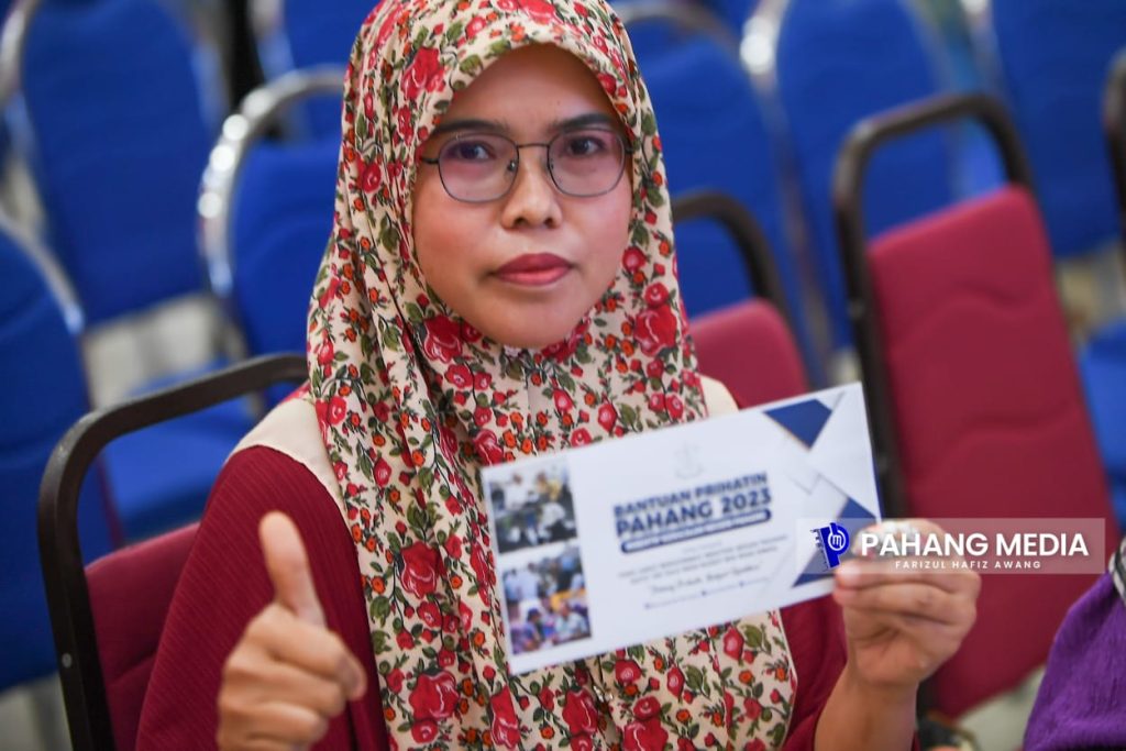“Hari ini saya dapat bantuan untuk penjaja. Terima kasih YB. Fadzli dan Kerajaan Negeri Pahang, saya sangat gembira menerima bantuan ini.