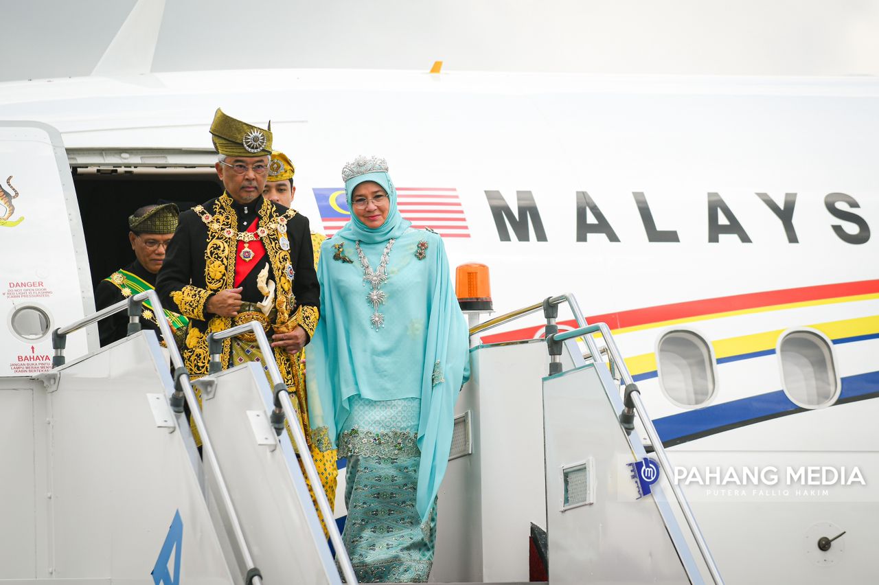 Pesawat khas yang membawa Seri Paduka berdua diterbangkan oleh Kapten Ahmad Najhan Mohd Jamil telah berlepas kira-kira jam 11.16 pagi dari Kuala Lumpur International Airport (KLIA).