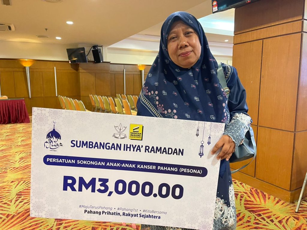 Puan Wan Shahriza Wan Ab. Rahman, 55, daripada Persatuan Sokongan Anak-anak Kanser Pahang (PESONA) turut melahirkan penghargaan di atas keprihatinan Kerajaan Negeri Pahang dan Yayasan Pahang.