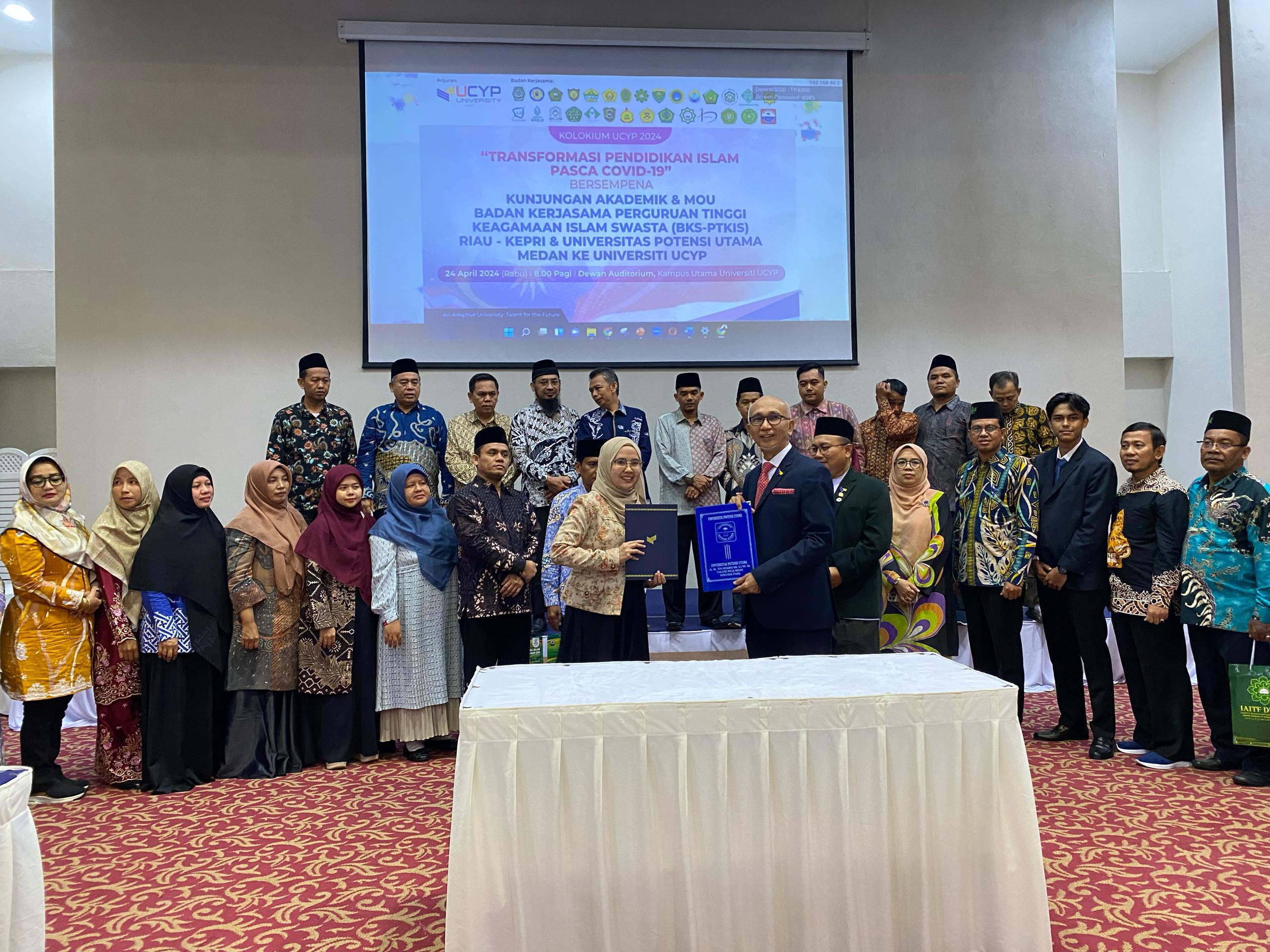 KUANTAN, 24 APRIL 2024 : UCYP University menandatangani perjanjian kerjasama (MoU) bersama dua institusi dari Indonesia iaitu Badan Kerjasama Perguruan Tinggi Keagamaan Islam Swasta (BKS-PTKIS) Riau dan Universitas Potensi Utama (UPU) Medan hari ini.