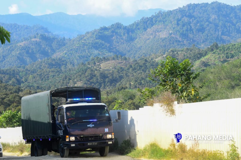 RAUB, 30 APRIL 2024 : Kerajaan Pahang melalui Unit Penguatkuasaan Negeri Pahang (UPNP) terus bertindak tegas terhadap aktiviti pencerobohan hutan di negeri ini dengan menahan dua pekebun haram musang king dalam Ops Sekat di Sungai Ruan di sini hari ini.