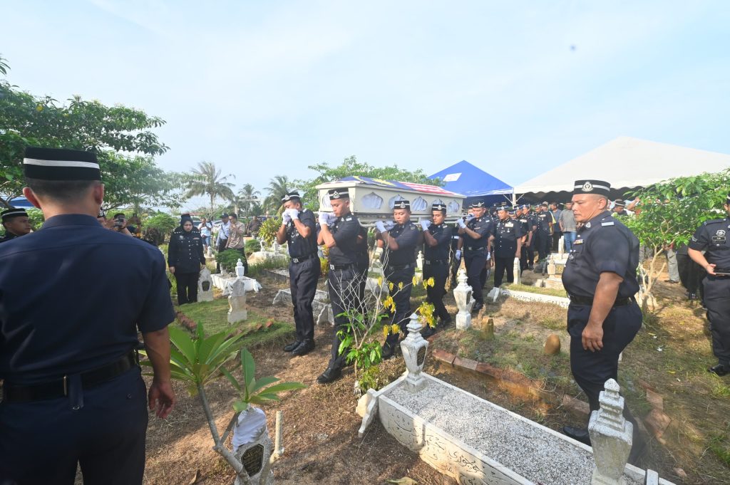 Turut sama, ahli keluarga, sanak saudara, pegawai serta anggota polis daripada IPK Pahang dan IPD Kuantan yang hadir memberi penghormatan buat kali terakhir.