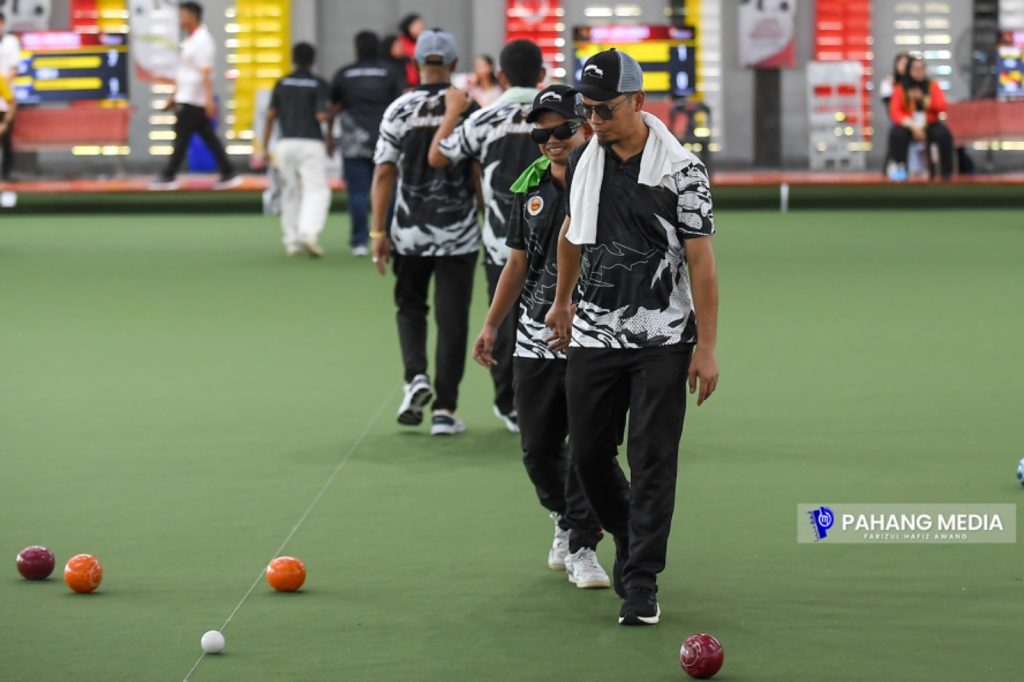 KUCHING, 22 SEPTEMBER 2024 : Pahang menunjukkan permulaan baik apabila berjaya memenangi lima kategori peringkat kumpulan menerusi sukan boling padang acara itu yang berlangsung di Area Lawn Bowls, Kuching di Sarawak, pagi tadi.
