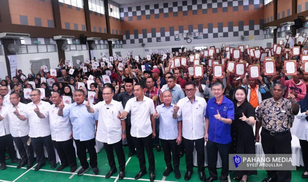“Kerajaan Negeri Pahang mensasarkan pemberian hakmilik 1 juta menjelang tiga, empat tahun akan datang, sekarang sudah ada lebih 800,000 hakmilik membabitkan semua hakmilik sama ada FELDA atau FELCRA di Pahang, siapa yang ada geran kita kira dalam kategori itulah,” katanya. -PAHANGMEDIA