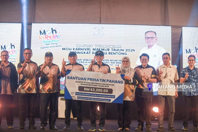 BENTONG, 20 OKTOBER 2024 : Kerajaan Pahang menyampaikan sejumlah RM63,200 Bantuan Prihatin Pahang (BPP) bagi kluster petani dan nelayan pada Program Moh Karnival Makmur 2024 Daerah Bentong, malam tadi.