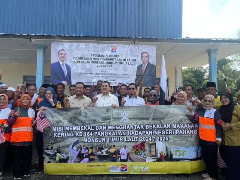 “Program flag off adalah simbolik kepada misi penghantaran keperluan bekalan bencana ke pangkalan hadapan di daerah Pekan bagi persediaan 104 pusat pemindahan sementara di seluruh daerah Pekan yang menampung seramai 19,950 mangsa pindah bagi menghadapi Monsun Timur Laut.