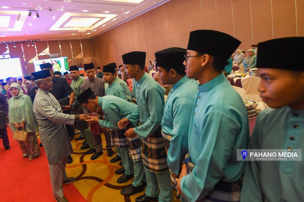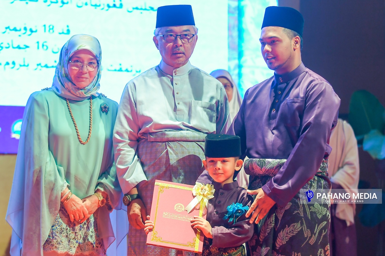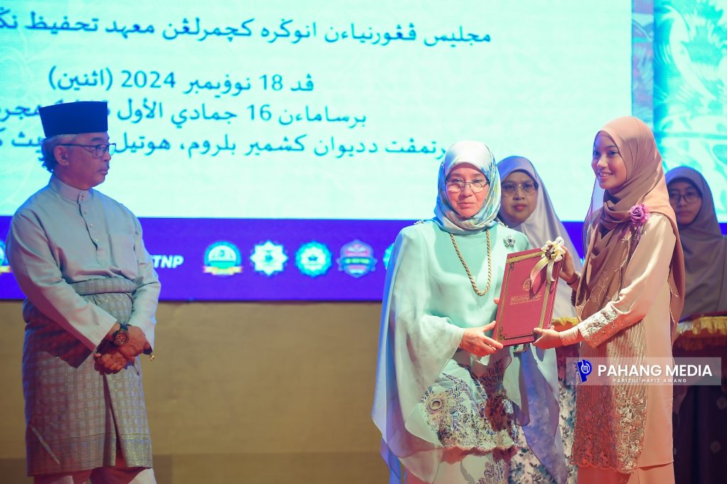 KUANTAN, 18 NOVEMBER 2024 : Kebawah Duli Paduka Baginda Sultan Pahang Al-Sultan Abdullah Ri’ayatuddin Al-Mustafa Billah Shah Ibni Almarhum Sultan Haji Ahmad Shah berkenan bercemar duli mengurniakan anugerah kepada 52 pelajar Maahad Tahfiz Negeri Pahang (MTNP) yang memperoleh keputusan cemerlang semua A dalam Sijil Pelajaran Malaysia (SPM) tahun lalu.