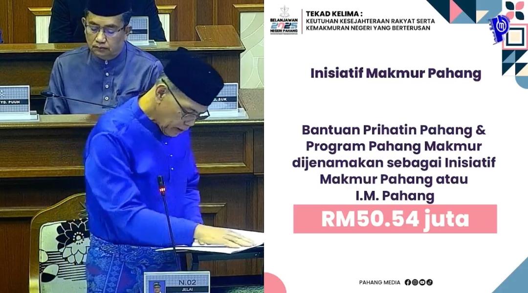 KUANTAN, 29 NOVEMBER 2024 : Kerajaan Negeri Pahang menjenamakan semula Bantuan Prihatin Pahang dan Program Pahang Makmur sebagai Inisiatif Makmur Pahang atau I.M. Pahang bagi menyeragamkan bentuk bantuan dan inisiatif sebelum ini.