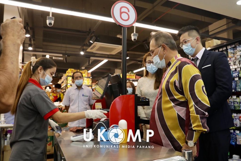 Menteri Besar Pahang, YAB Dato’ Sri Haji Wan Rosdy Wan Ismail membuat pembayaran ketika pembukaan Pasar Raya Star Grocer di Jalan Air Putih, Kuantan, hari ini.