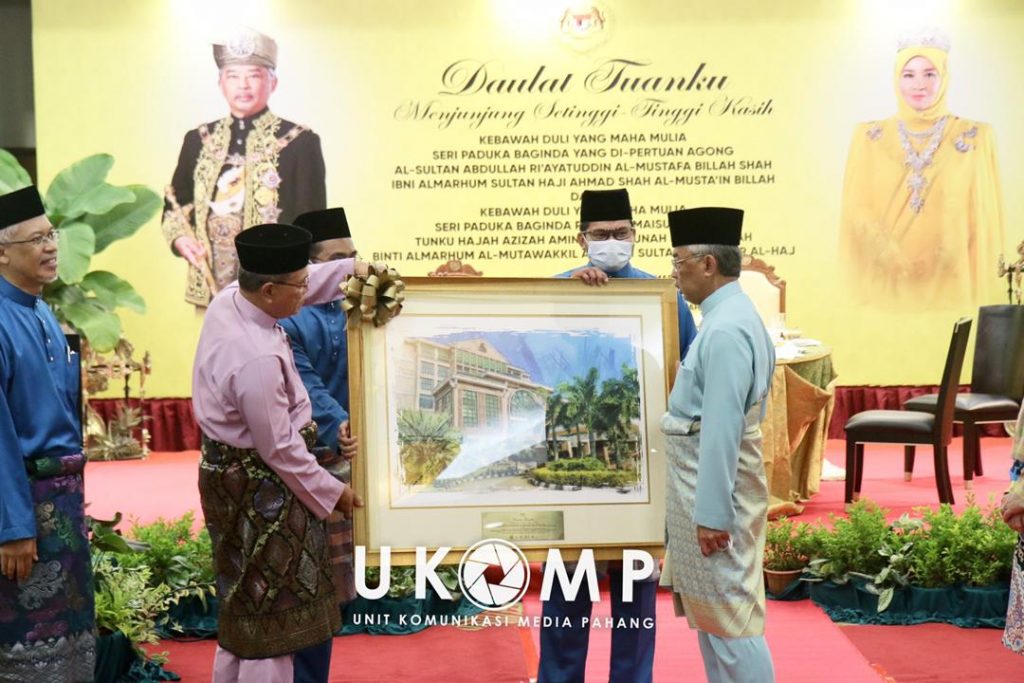 Baginda turut berkenan memotong pulut kuning dan persembahan kek sempena hari keputeraan baginda ke-61 sebelum menerima persembahan cendera kenangan daripada YAB Menteri Besar Pahang.