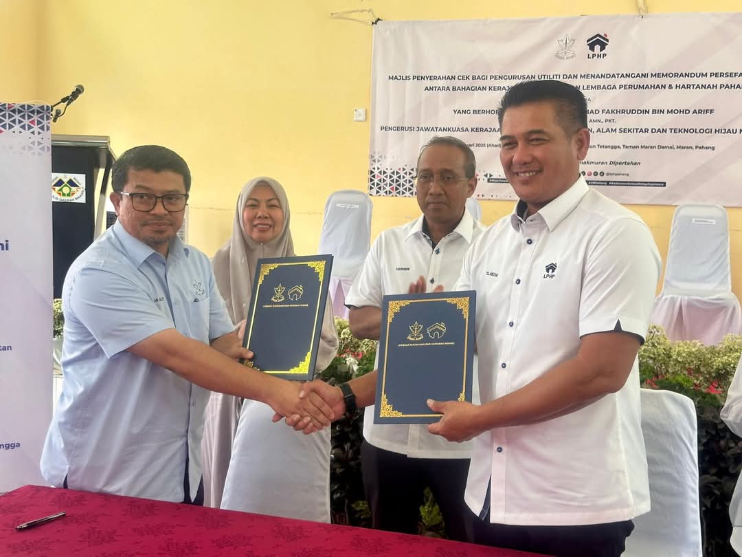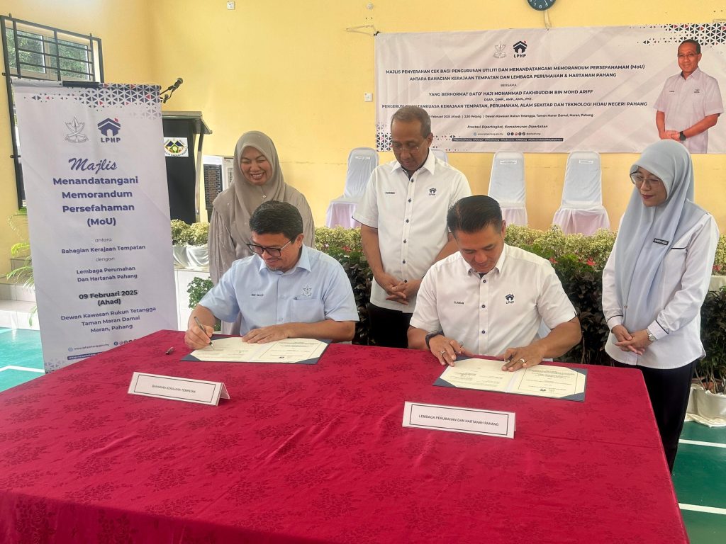 MARAN, 10 FEBRUARI 2025 : Kerajaan Negeri Pahang memeterai perjanjian persefahaman (MoU) bagi membolehkan Lembaga Perumahan dan Hartanah Pahang (LPHP) menjadi pengelola terhadap pengurusan kutipan sewa Perumahan Awam Kos Rendah (PAKR) di negeri ini.