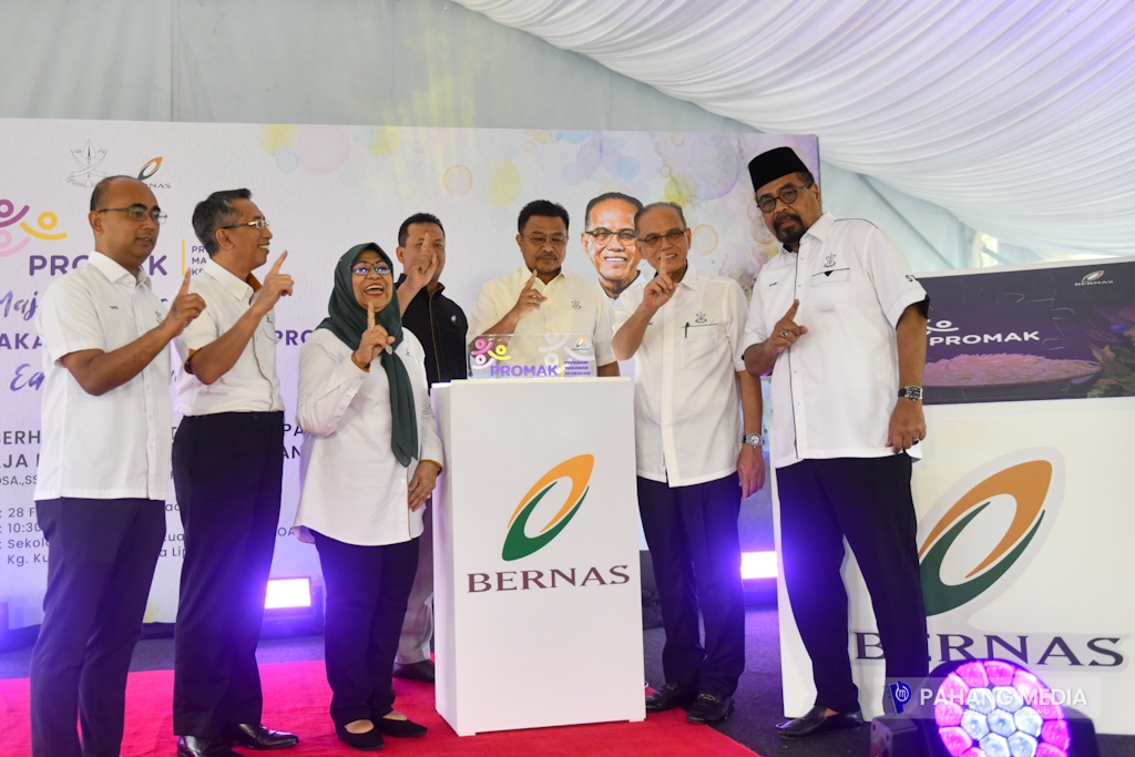 Turut hadir, YB. Speaker Dewan Undangan Negeri Pahang, Dato’ Sri Haji Mohd Sharkar Haji Shamsudin; dan Pengerusi BERNAS, YBhg. Dato Sri Rohani Abdul Karim.