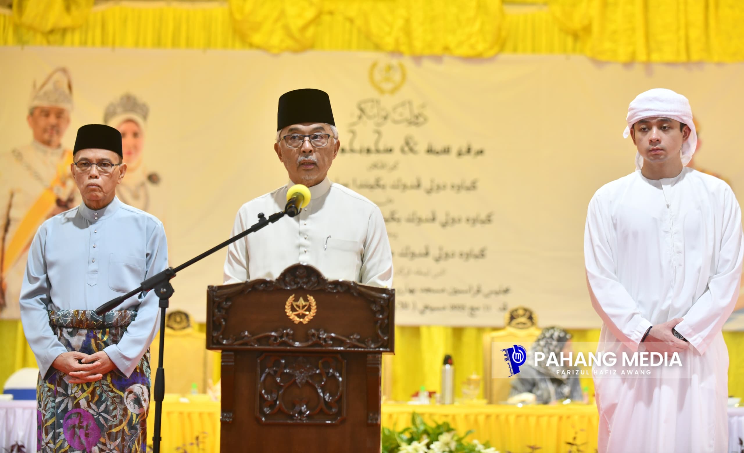 JERANTUT, 11 MAC 2025 : Kebawah Duli Paduka Baginda Sultan Pahang Al-Sultan Abdullah Ri’ayatuddin Al-Mustafa Billah Shah Ibni Almarhum Sultan Haji Ahmad Shah mengingatkan kepada pemimpin agar berhenti menjadi ‘badut’ yang mempolemikkan isu raja, agama dan kaum (3R).