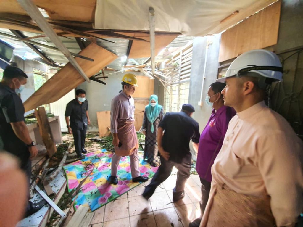 KUANTAN, 20 OGOS 2020: Kebawah Duli Yang Maha Mulia Pemangku Raja Pahang Tengku Mahkota Tengku Hassnal Ibrahim Alam Shah Ibni Al-Sultan Abdullah Ri’ayatuddin Al-Mustafa Billah Shah bercemar duli menziarahi mangsa bencana sebuah rumah yang rosak teruk akibat dihempap pokok besar dua hari lalu di Taman Balok Pine di sini, hari ini.